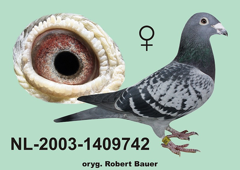 oryg. De Klak, "Oude Stier duivin v. 03", wnuczka "613", córka "Late Kras 045"