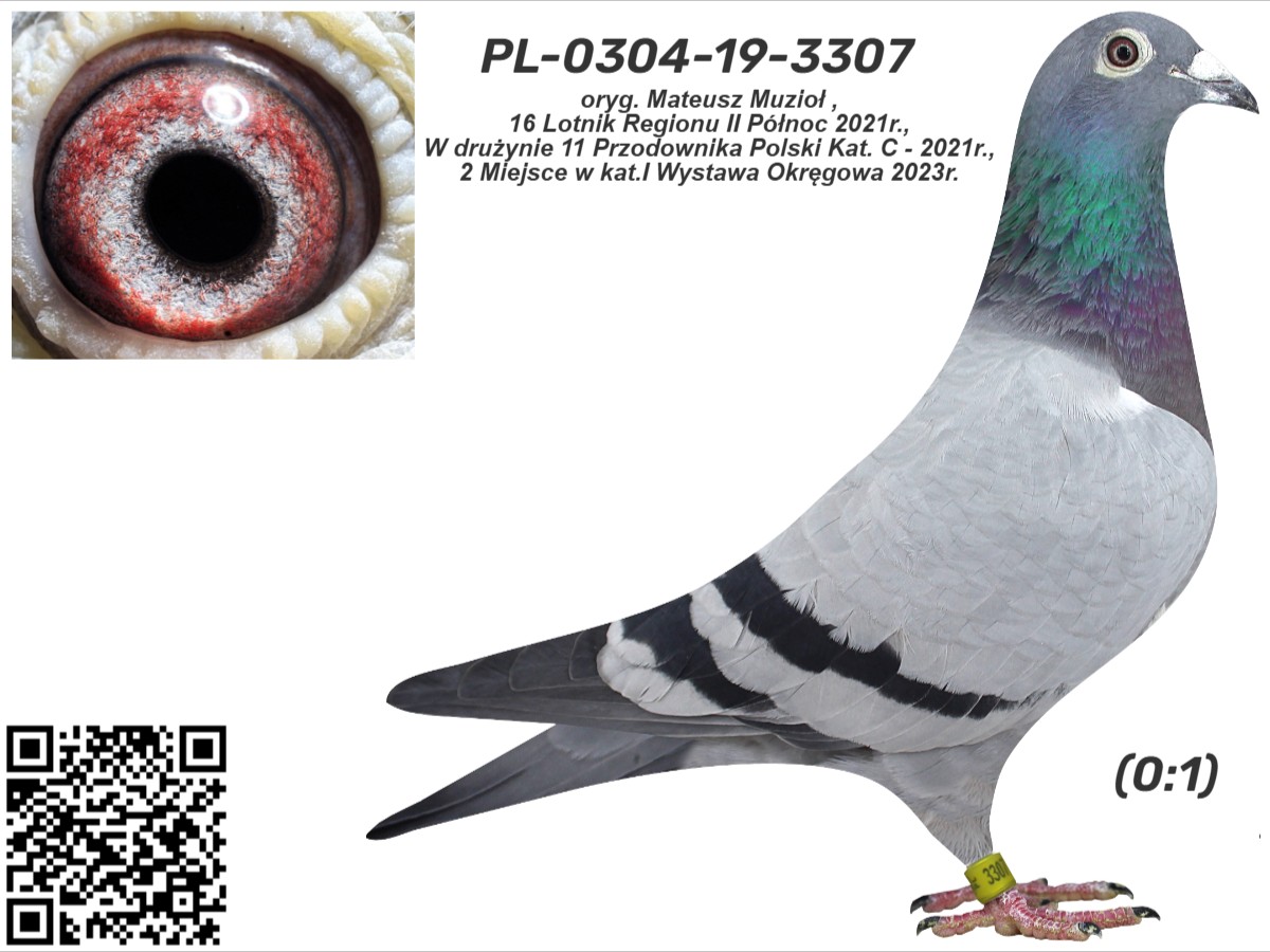 Numer ojca: PL-0426-17-2827 Numer matki: PL-0426-18-6444 Opis: oryg. Mateusz Muzioł , 16 Lotnik Regionu II Północ 2021r., w drużynie 11 Przodownika Polski Kat. C - 2021r., 2 Miejsce w kat.I Wystawa Okręgowa 2023r.