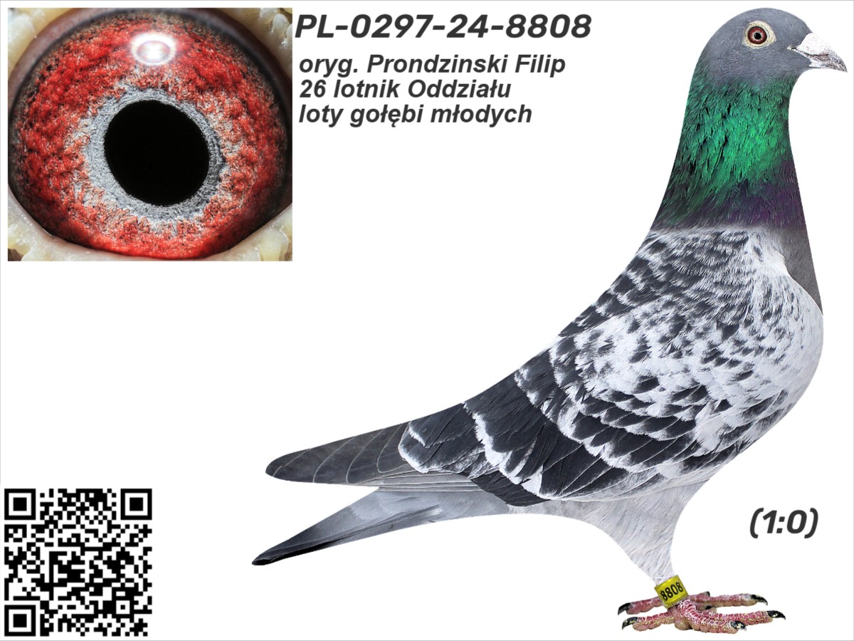 oryg. Prondzinski Filip, 26 lotnik Oddziału gołębi młodych, gołąb zdobył m.in.: 28k./774goł. (339km), 39k./2487goł. (138km)