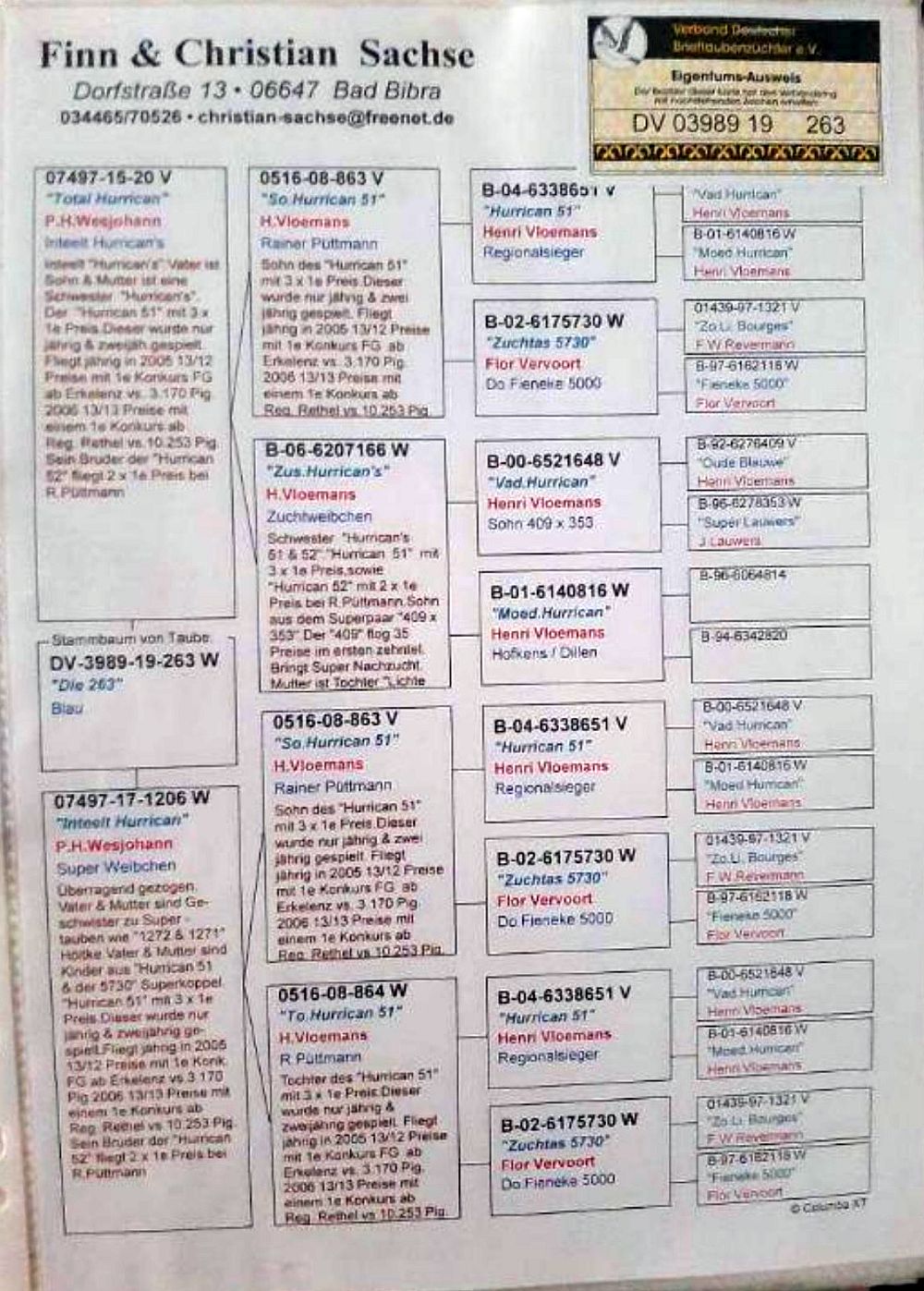 oryg. Sachse Finn & Christian (100% Wesjohann/ Vloemans), inbred "Hurrican 51"