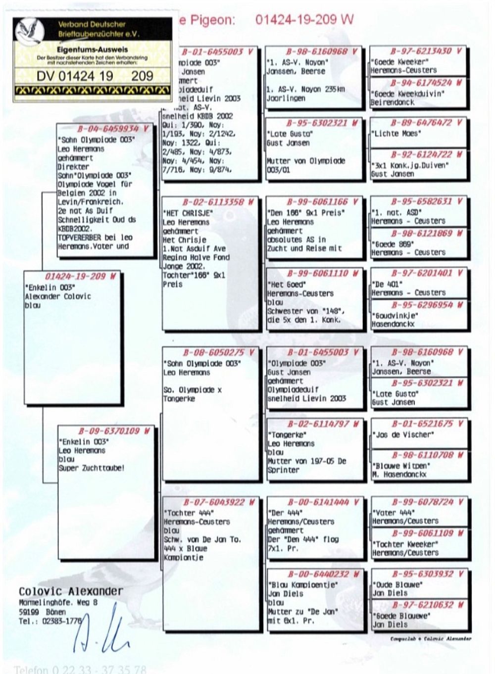 oryg. Colovic Alexander (100% Heremans), inbred "Olympiade 003", sprzedana do Chin za 12 tys. PLN