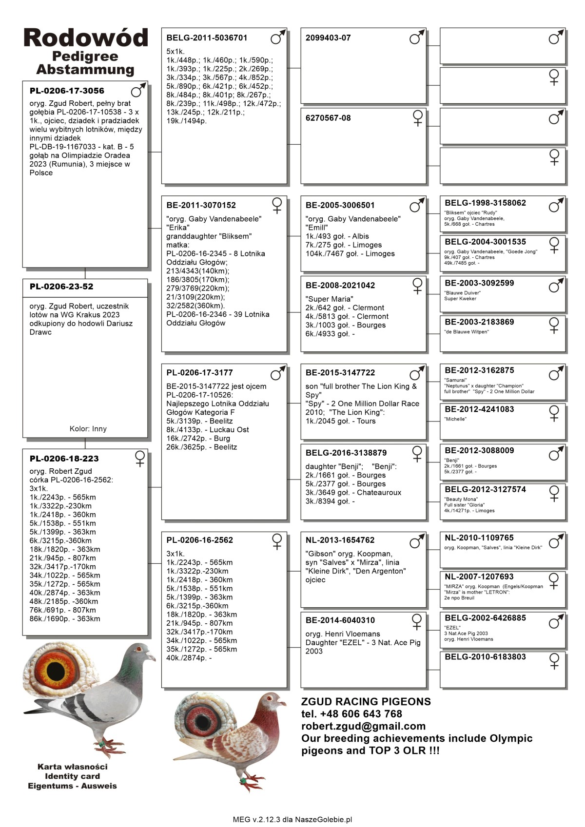 oryg. Zgud Robert, uczestnik lotów na WG Krakus 2023 odkupiony do hodowli Dariusz Drawc
