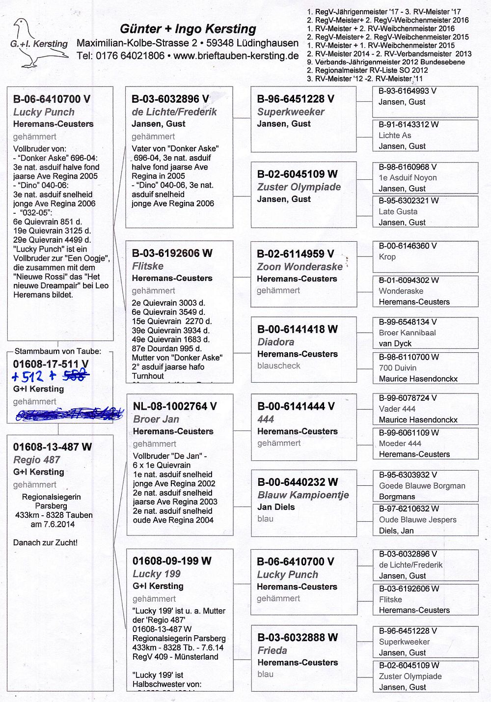 oryg. Kersting G. & I. (100% Heremans-Ceusters), syn "Lucky Punch"