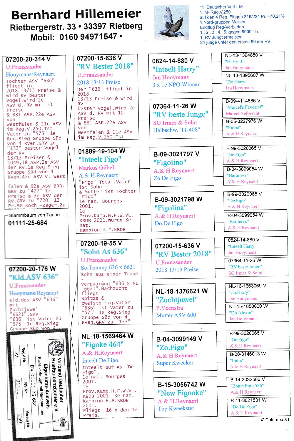 oryg. Bernhard Hillemeier (Reynaert/ Hooymans), inbred "As 636", linia "De Figo", "Harry"