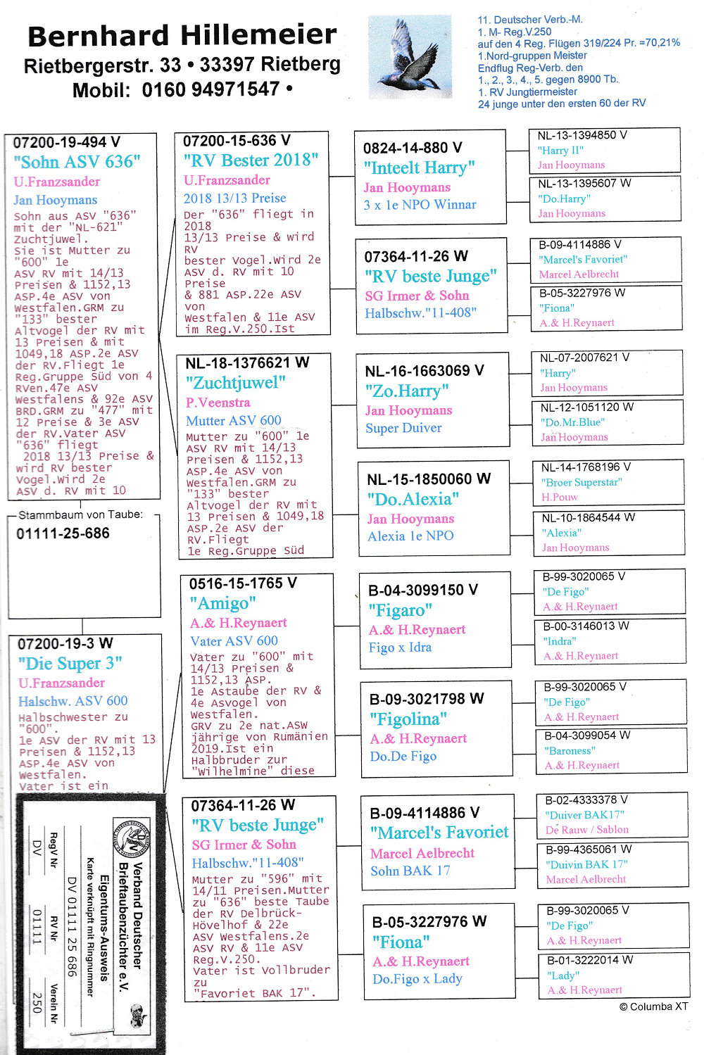 oryg. Bernhard Hillemeier (Reynaert/ Hooymans), wnuczka "As 636", linia "De Figo", "Harry", "Amigo"