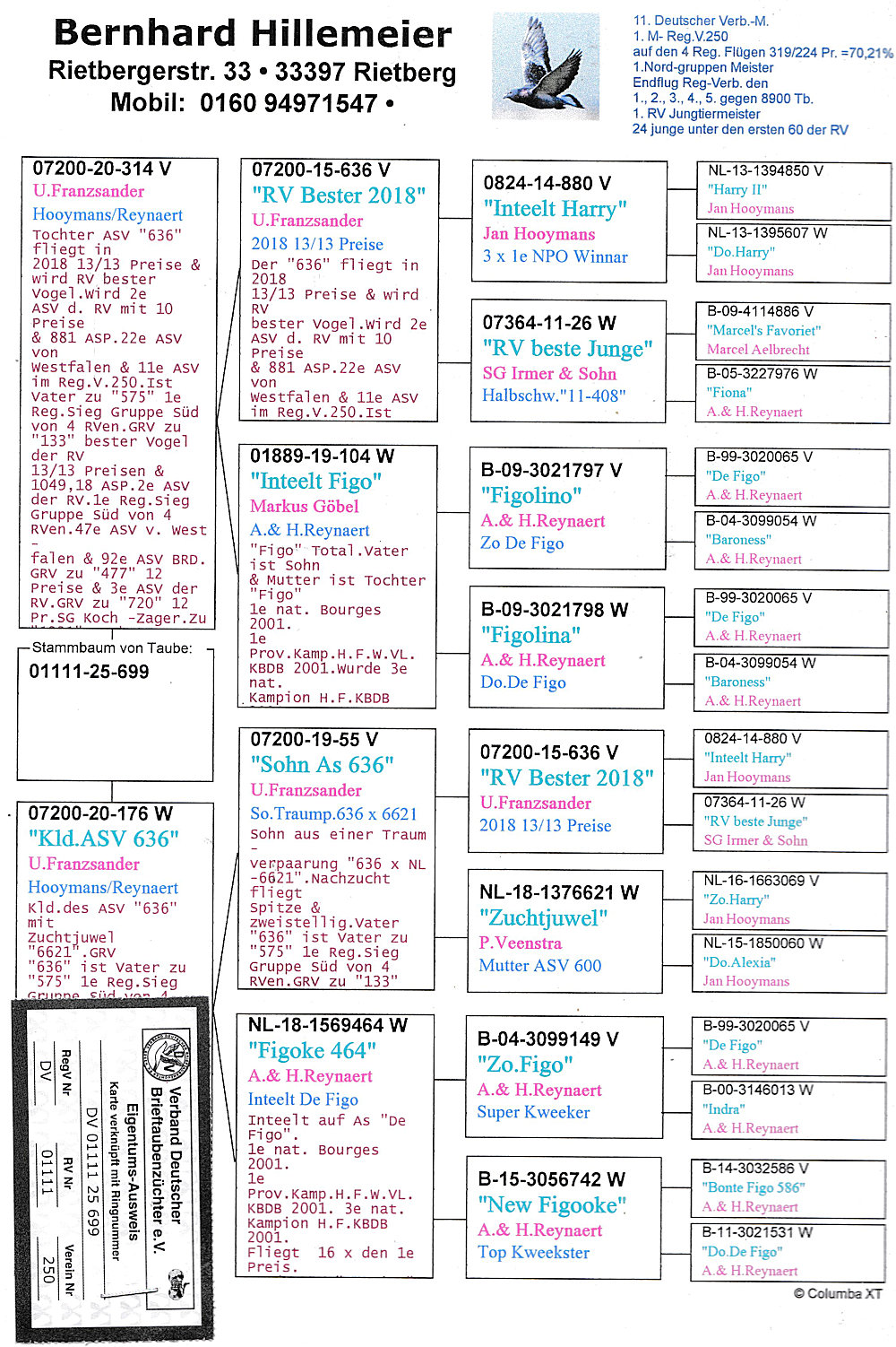 oryg. Bernhard Hillemeier (Reynaert/ Hooymans), inbred "As 636", linia "De Figo", "Harry"