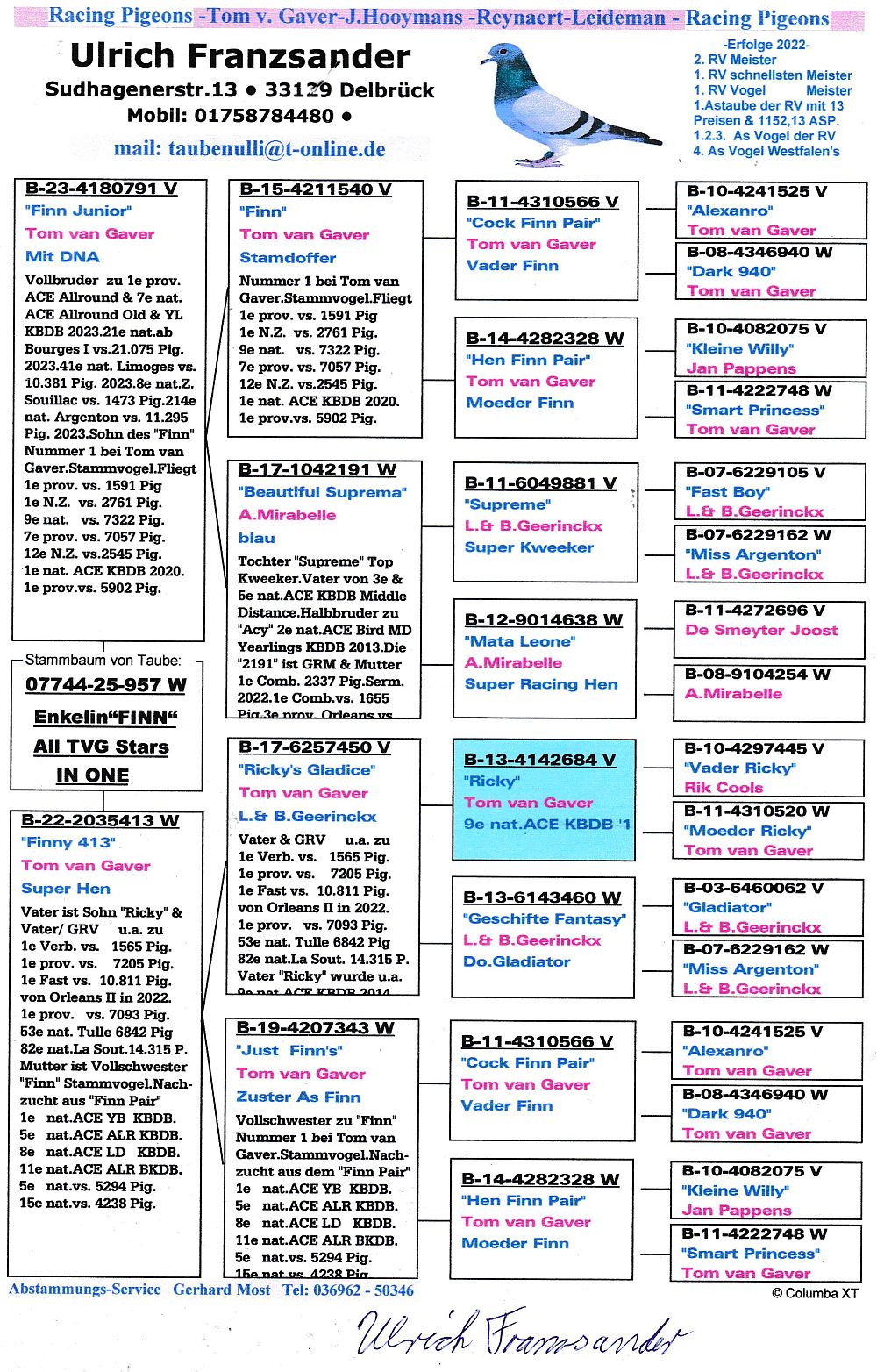 oryg. Ullrich Franzsander (100% Tom van Gaver), linia "Finn Pair", "Ricky"