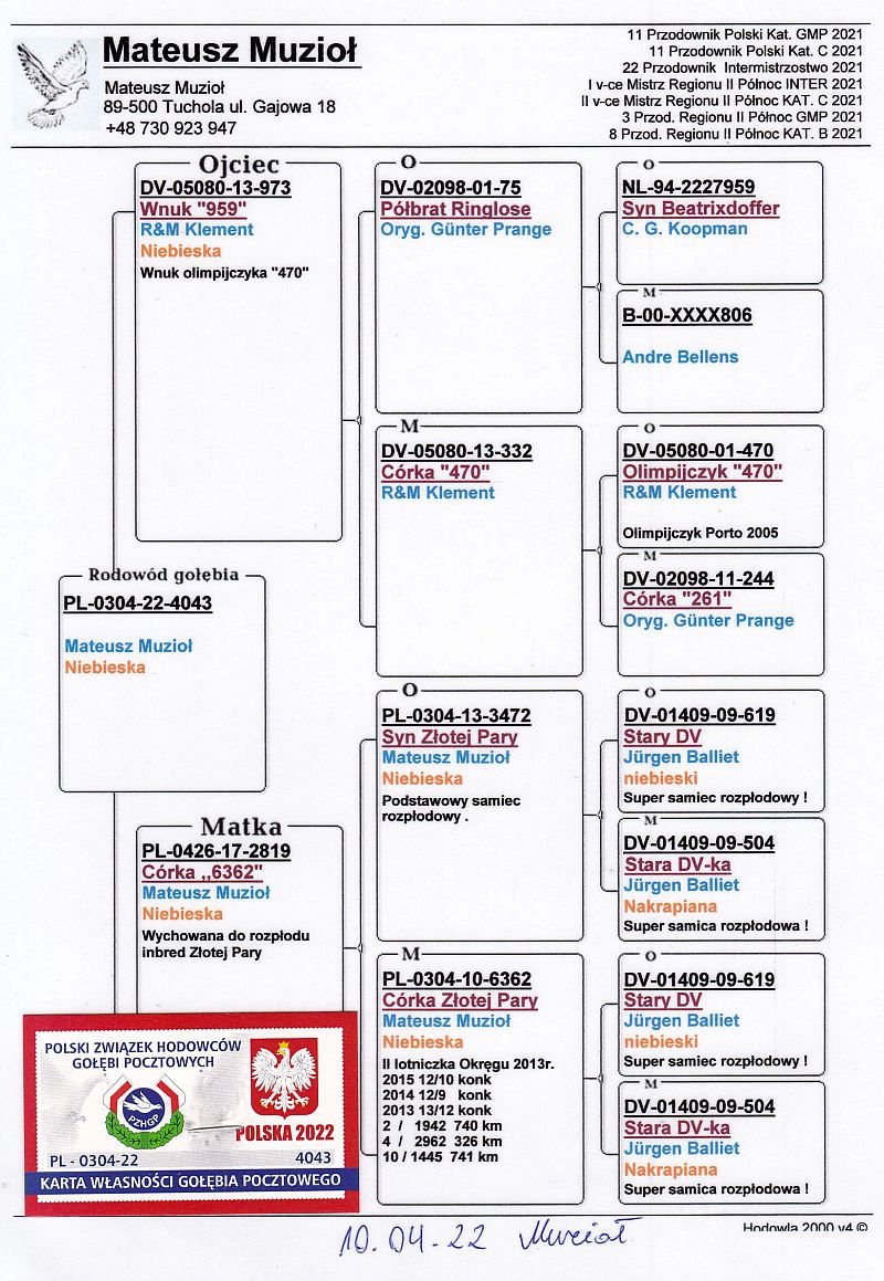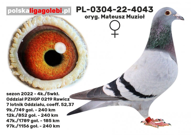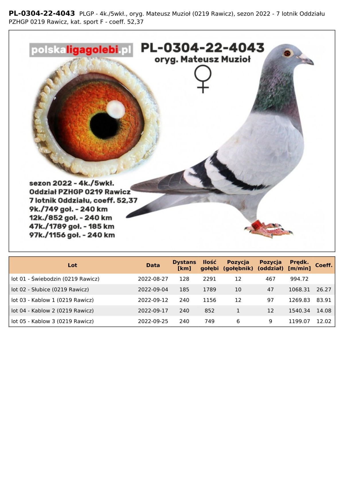 oryg. Mateusz Muzioł (0219 Rawicz), sezon 2022 - 7 lotnik Oddziału PZHGP 0219 Rawicz, kat. sport F - coeff. 52,37, 4k./5wkł.,