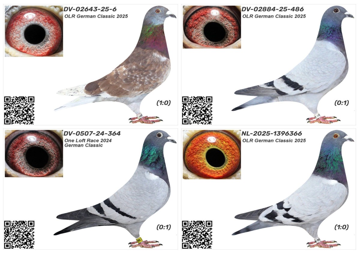 Hodowla: German Team Opis: One Loft Race 2025, German Classic - pakiet 4 gołębi. Uwaga!!! gołębie posiadają dokumentację taką jaka jest dołączona. Płeć podana przy gołębiach określona orientacyjnie. Ich wyniki lotowe na gołębniku w sezonie 2025 są dostępne na stronie internetowej https://www.german-classic-olr.de/ergebnisse-benzing-2025/. Więcej informacji o gołębiu i transporcie pod nr tel.: 511 607 710.