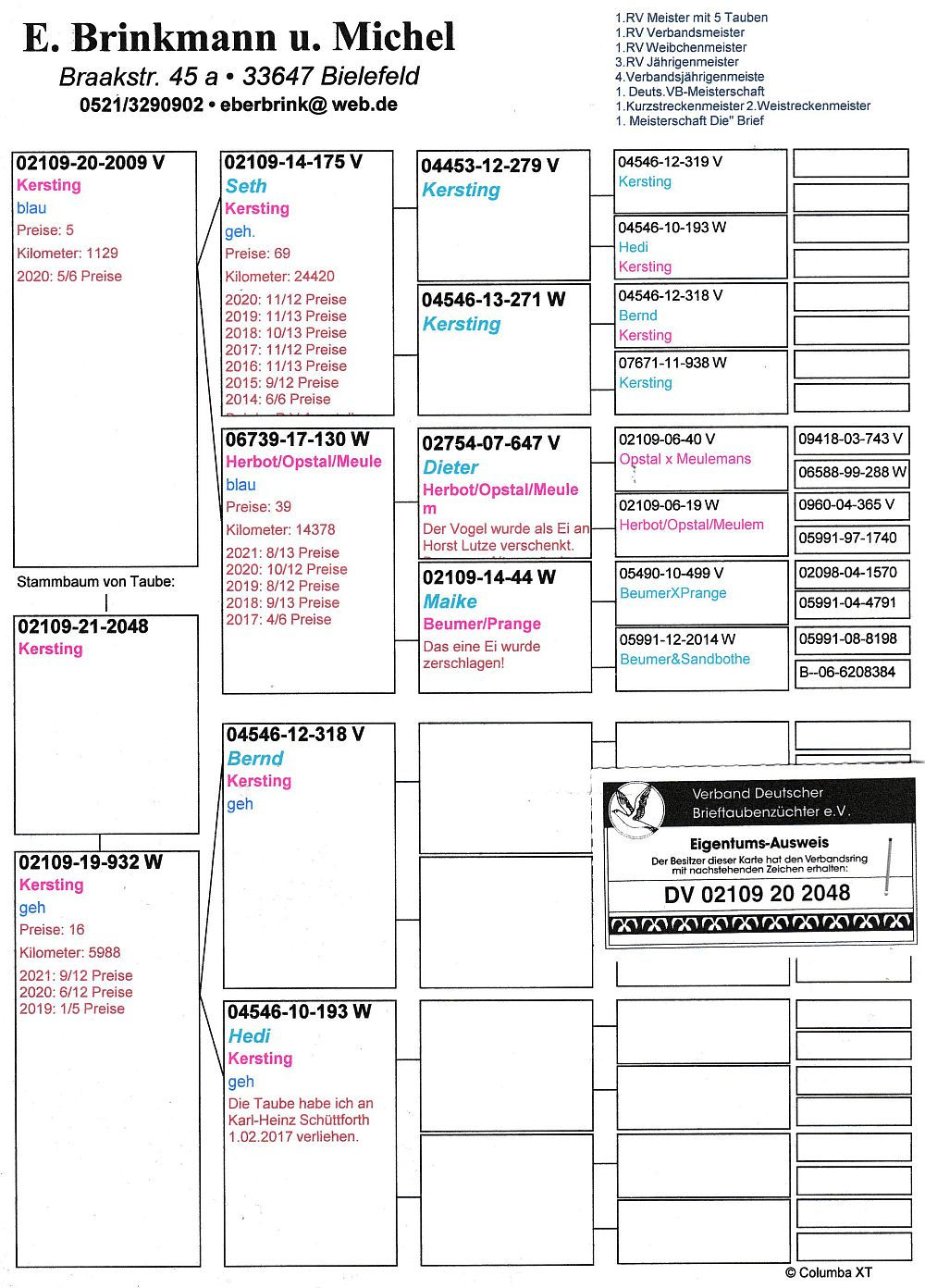 oryg. E. Brinkmann u. Michel (Kersting), podstawowy gołąb rozpłodowy hodowli ś.p. Jerzego Firyna
