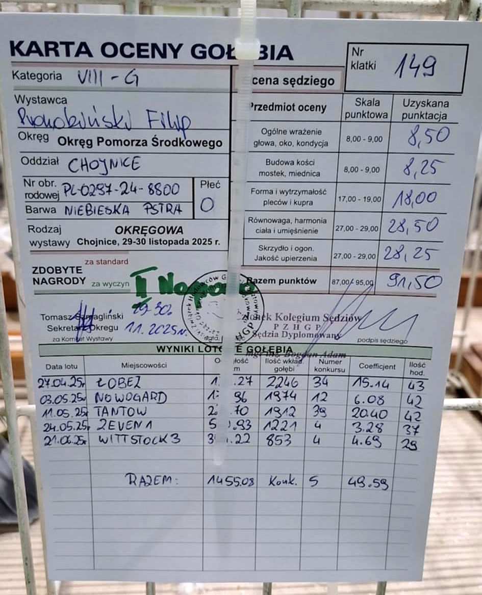 | Hodowla: Polska Liga Gołębi Pocztowych 2025 |