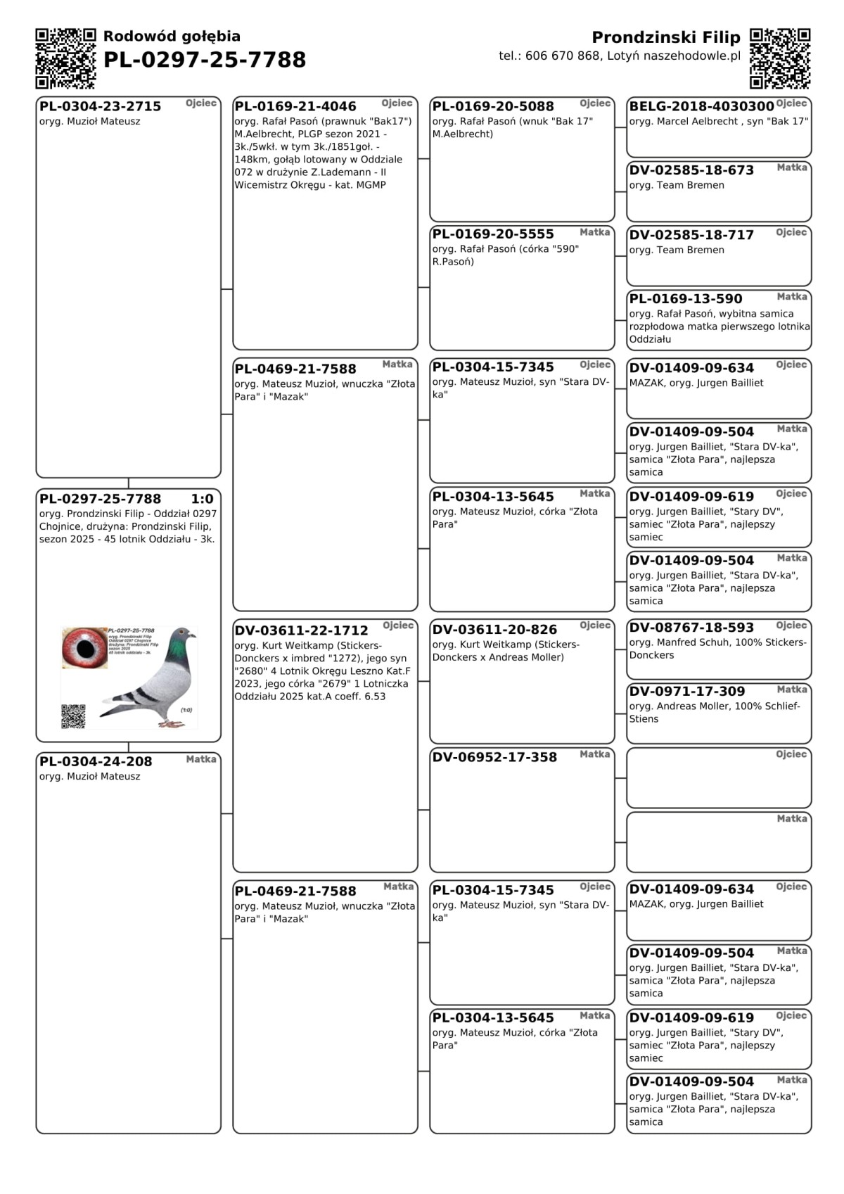 | Hodowla: Polska Liga Gołębi Pocztowych 2025 |