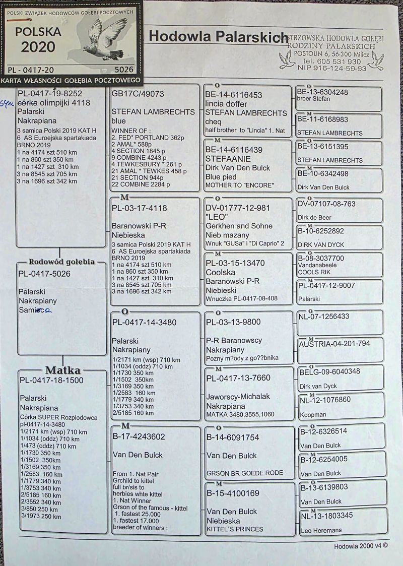 | Lot | Data | Dystans[km] | Ilośćgołębi | Pozycja(gołębnik) | Pozycja(oddział) | Prędkość[m/min] | Coeff. |