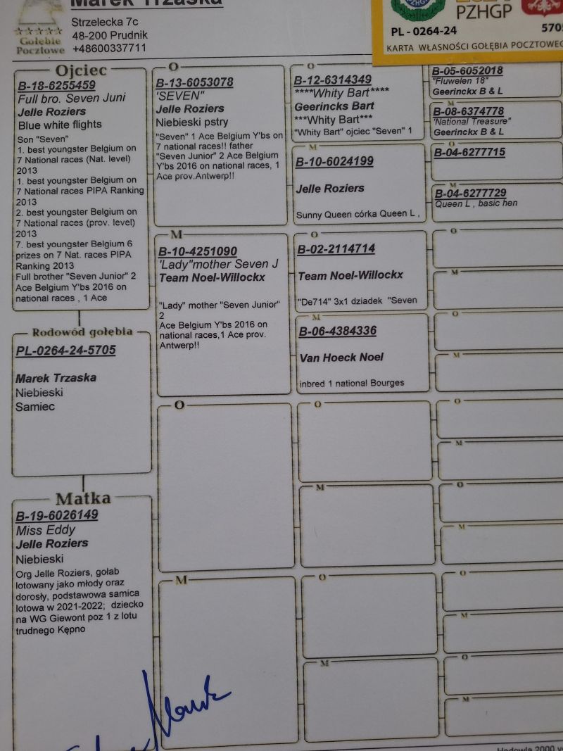 | Lot | Data | Dystans[km] | Ilośćgołębi | Pozycja(gołębnik) | Pozycja(oddział) | Prędkość[m/min] | Coeff. |
