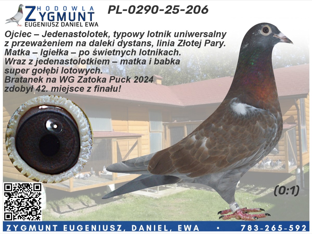 Hodowla: Zygmunt E. D. i E.  Numer ojca: PL-0290-17-6940  Numer matki: PL-0492-21-9634  Opis: Czerwona samiczka o wybitnym pochodzeniu.