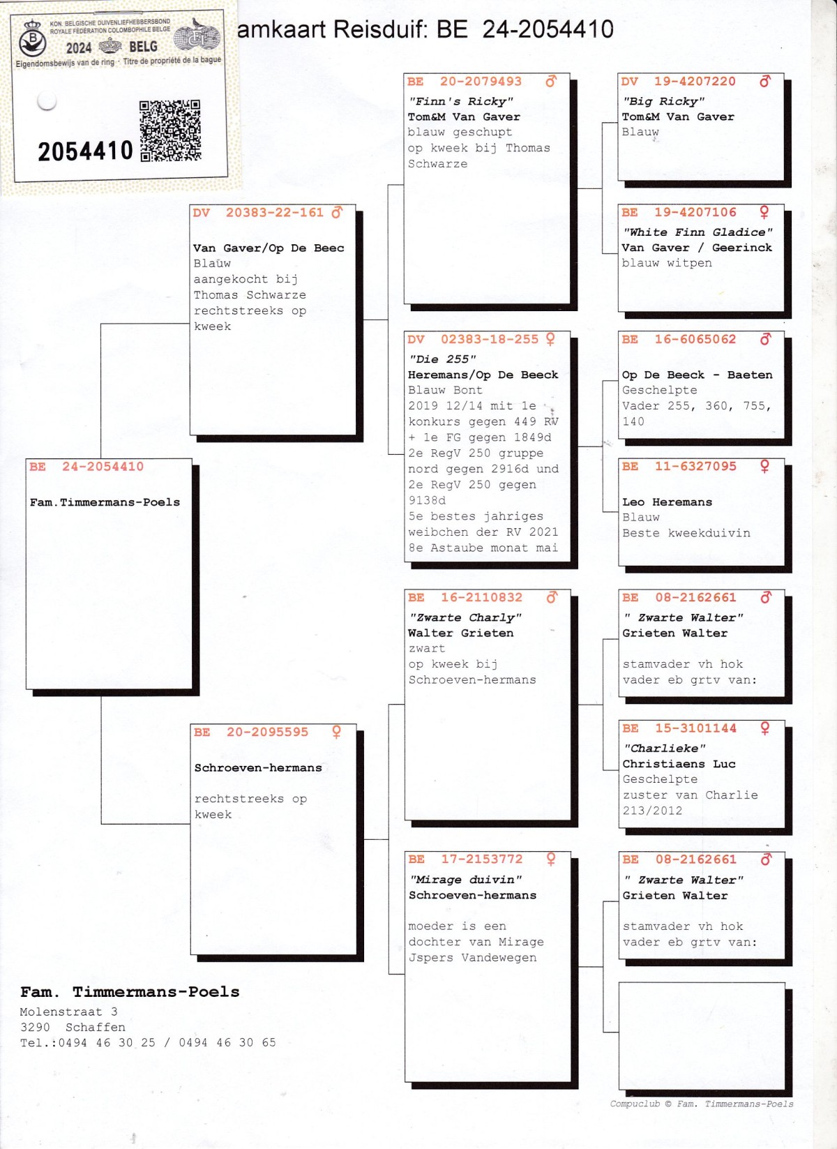 oryg. Fam. Timmermans-Poels (Van Gaver/ Schroeven-Heremans), linia "Finn's Ricky", "Die 255", "Zwarte Charly"