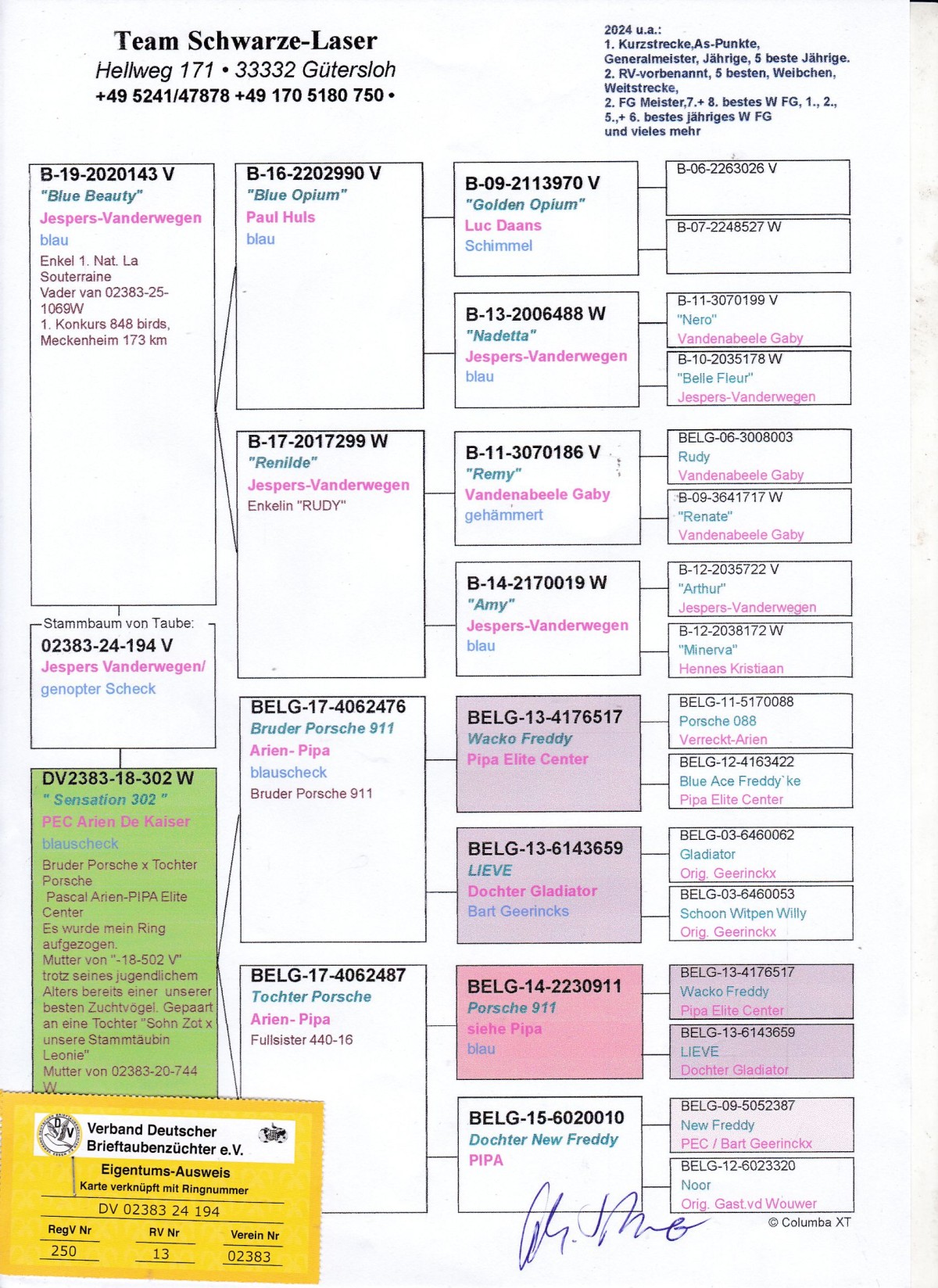 oryg. Team Schwarze-Laser (Jespers-Vanderwegen/ Arien De Kaiser), syn "Senssation 302"