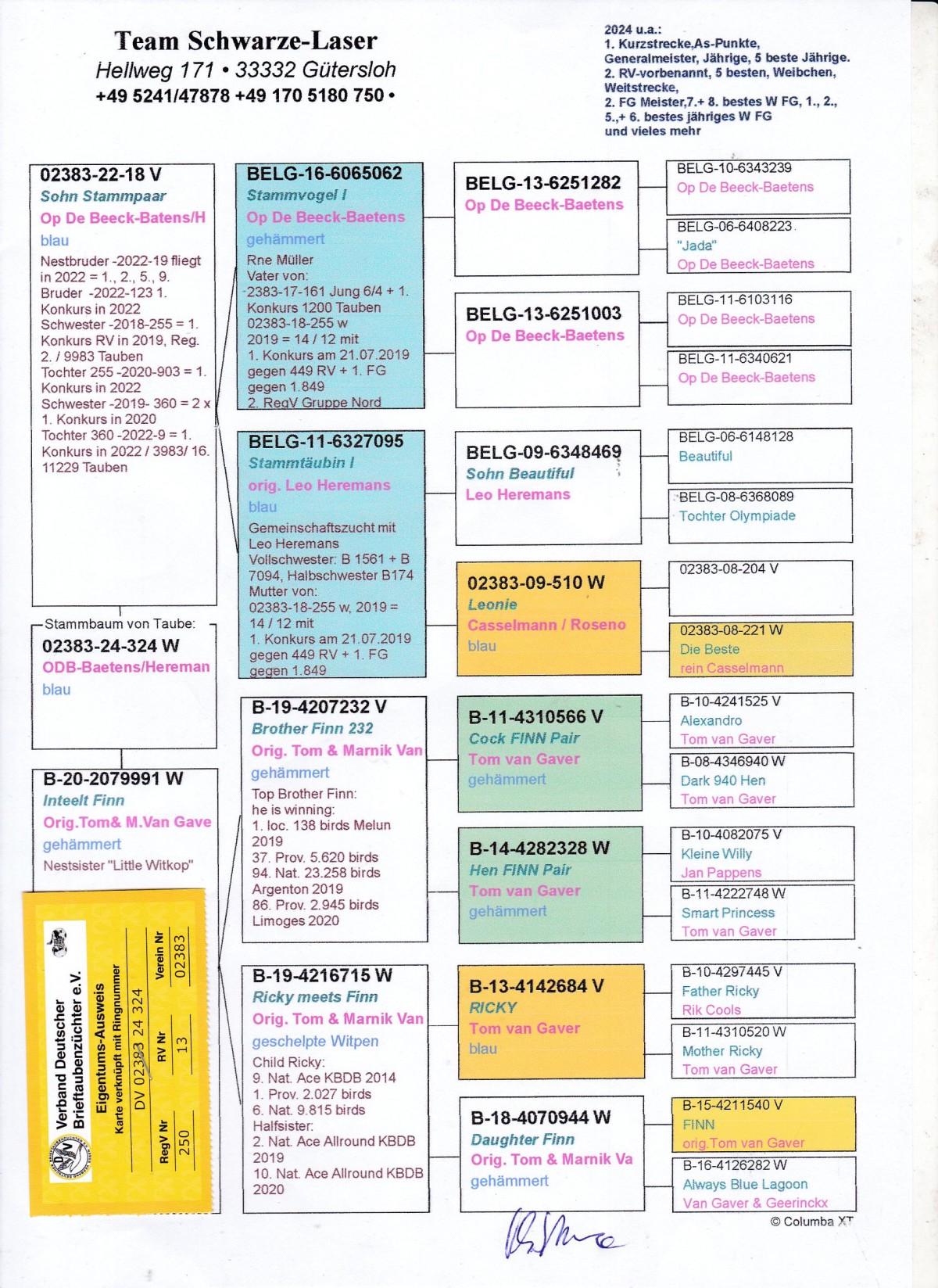 oryg. Team Schwarze-Laser (Op De Beeck/ Heremans/ Van Gaver), linia "Stammpaar", "Ricky", "Leonie", "Finn"