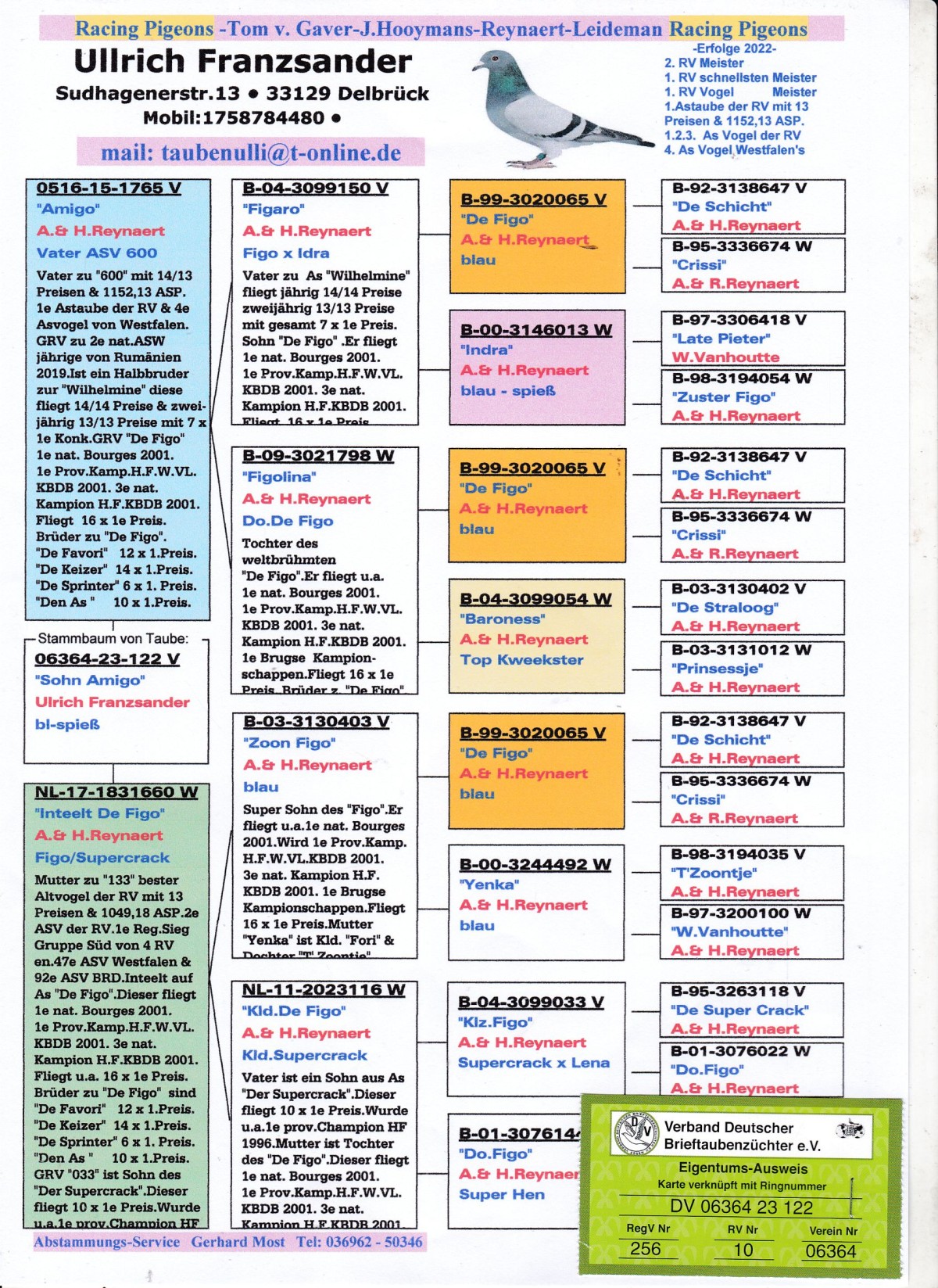 oryg. Ullrich Franzsander (100% Reynaert), linia "ASV 600", inbred "De Figo"