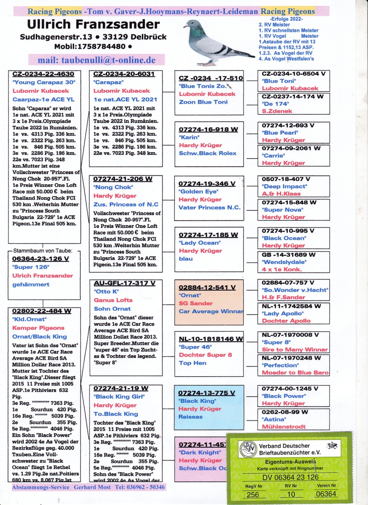 oryg. Ullrich Franzsander (Kubacek/ Kruger/ Ganus), linia "Carpaz", "Golden Eye", "Ornat", "Black King"