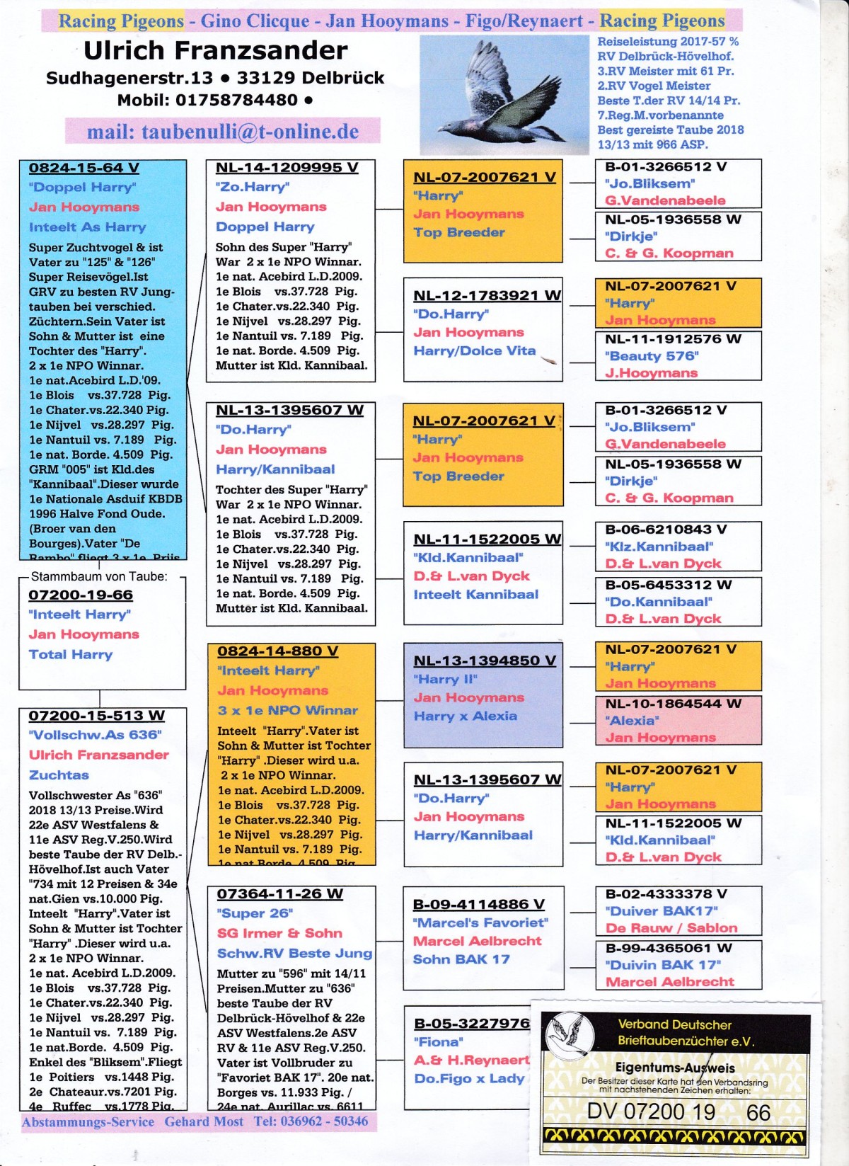 oryg. Ullrich Franzsander (100% Hooymans), inbred "Harry"