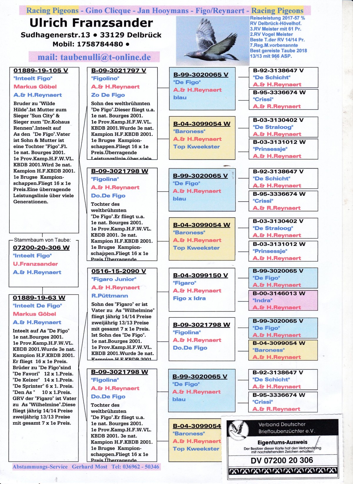 oryg. Ullrich Franzsander (100% Reynaert), inbred "De Figo"
