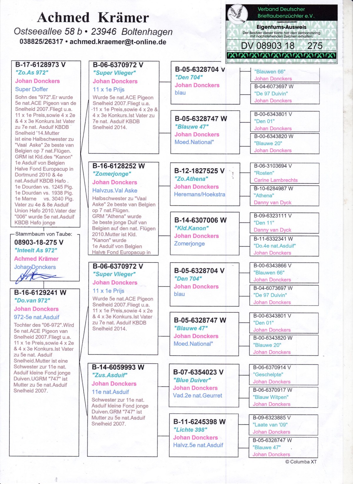 oryg. A. Kramer (100% Johan Donckers), inbred "As 972"