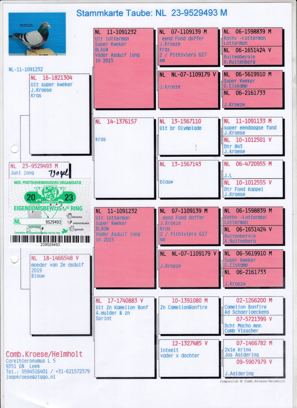 oryg. Comb. Kroese/Helmholt (100% Lotterman), inbred "2. As 2019"