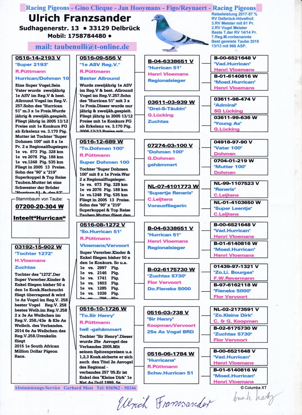 oryg. Ullrich Franzsander (Vloemans/ Dohmen/ Koopman/ Vervoort), linia ""Hurrican 51", "Super Dohmen 100", "Sir Henry", "Fieneke 5000"