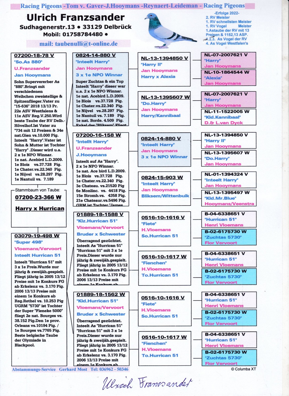 oryg. Ullrich Franzsander (Hooymans/ Vloemans/ Vervoort), linia "Harry", "Hurrican 51"