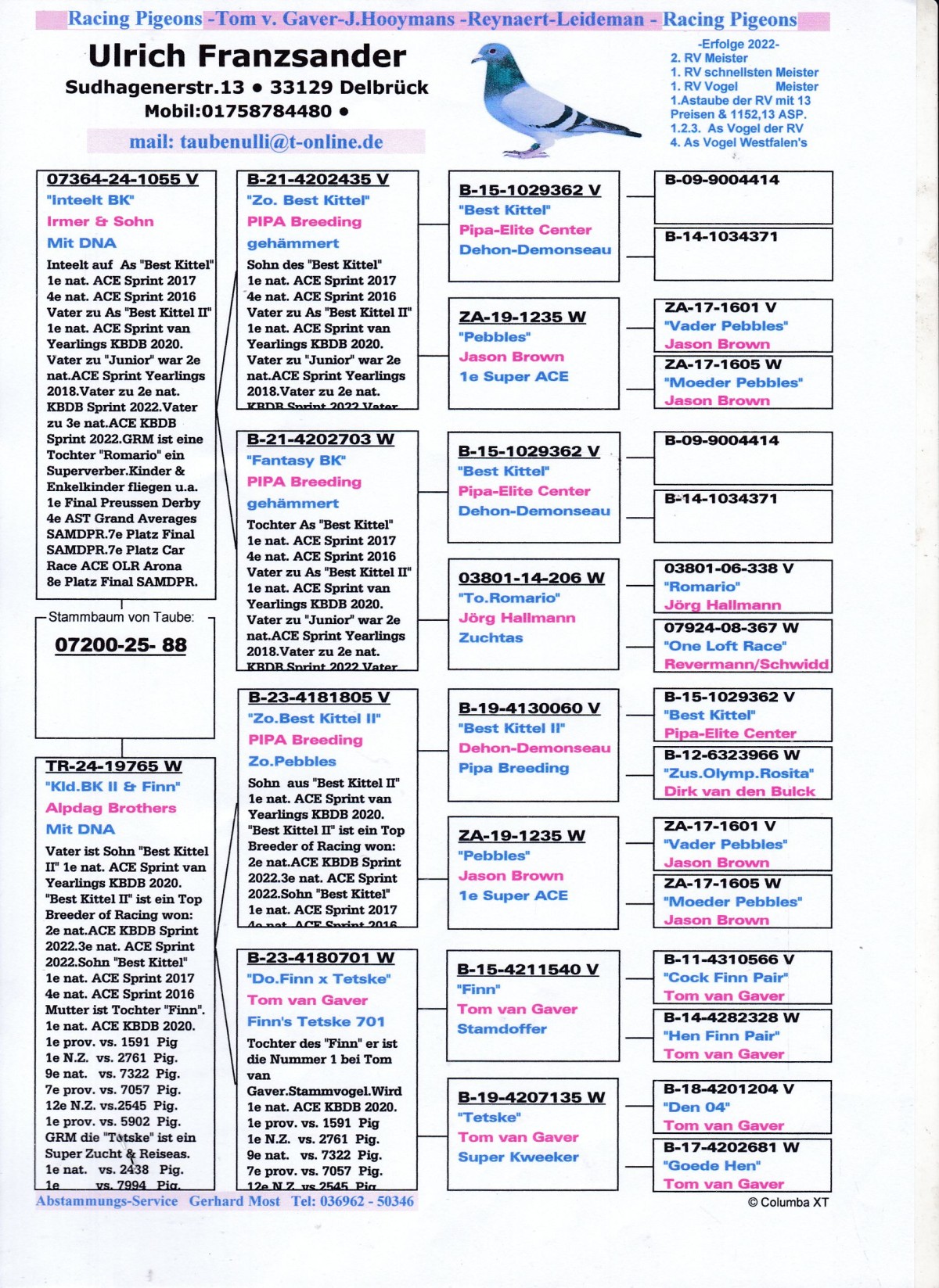 oryg. Ullrich Franzsander (Pipa Elite Center/ Van Gaver), linia "Best Kittel", "Romario", "Finn", "Tetske"
