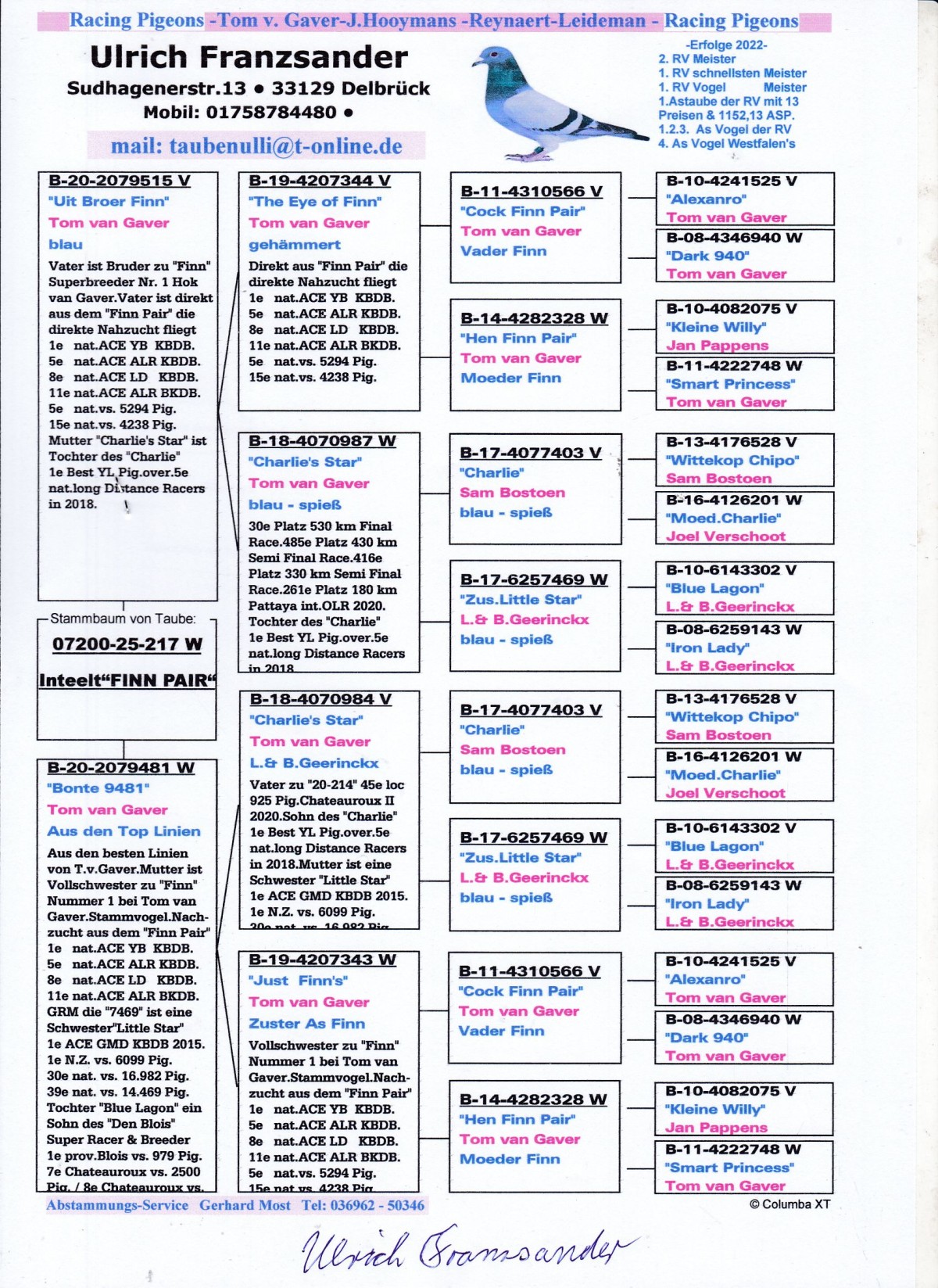 oryg. Ullrich Franzsander (100% Van Gaver), inbred "Finn Pair"