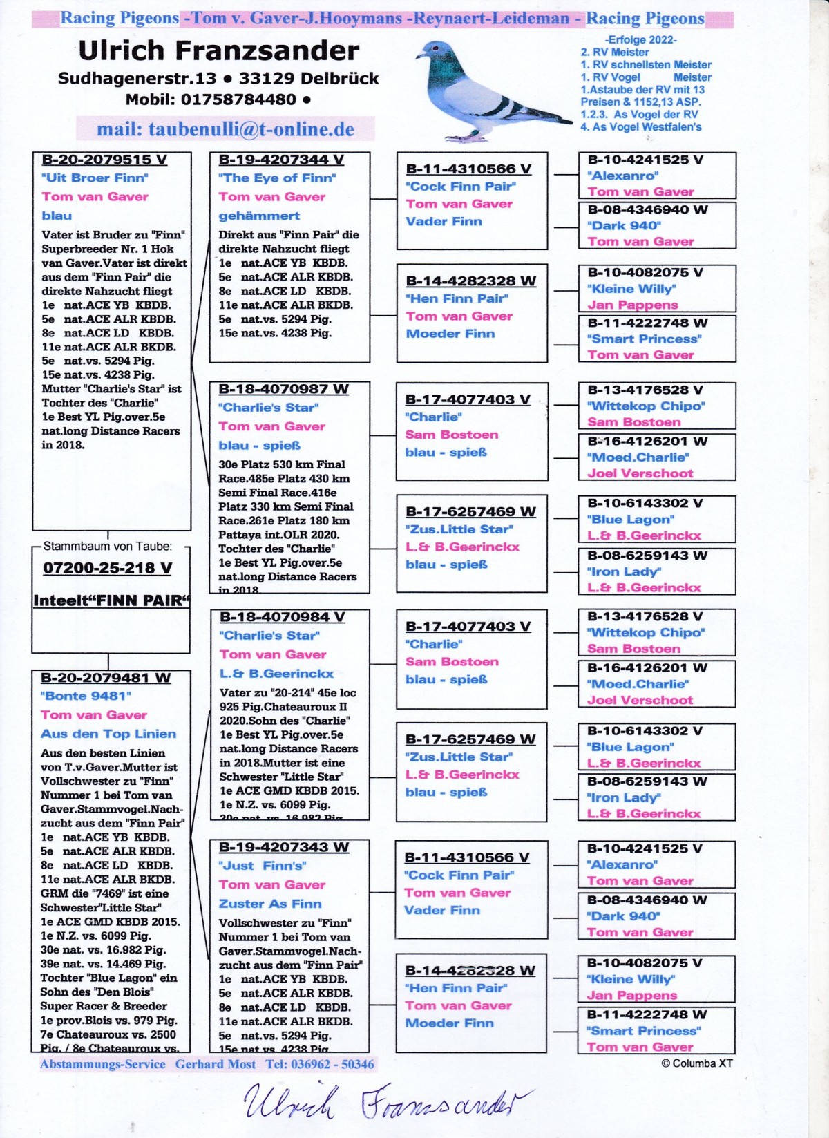 oryg. Ullrich Franzsander (100% Van Gaver), inbred "Finn Pair"