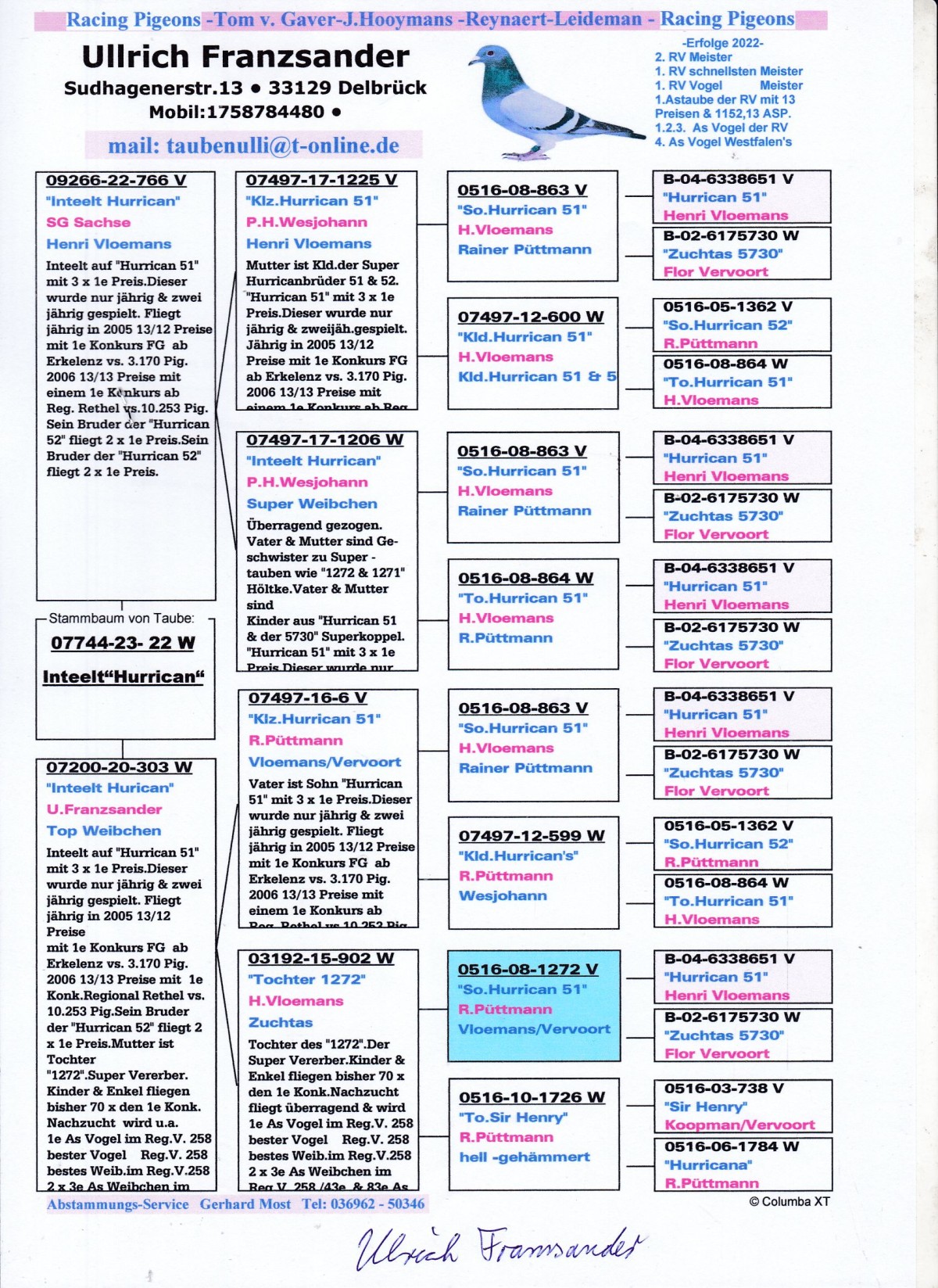 oryg. Ullrich Franzsander (100% Vloemans), inbred "Hurrican 51"
