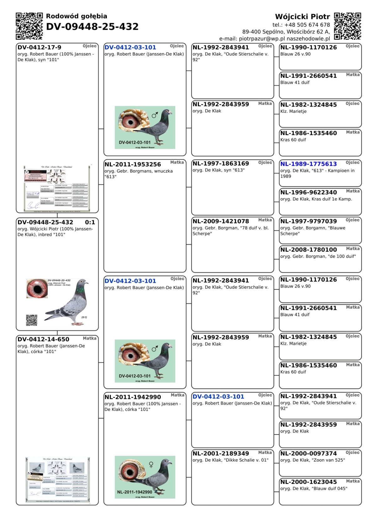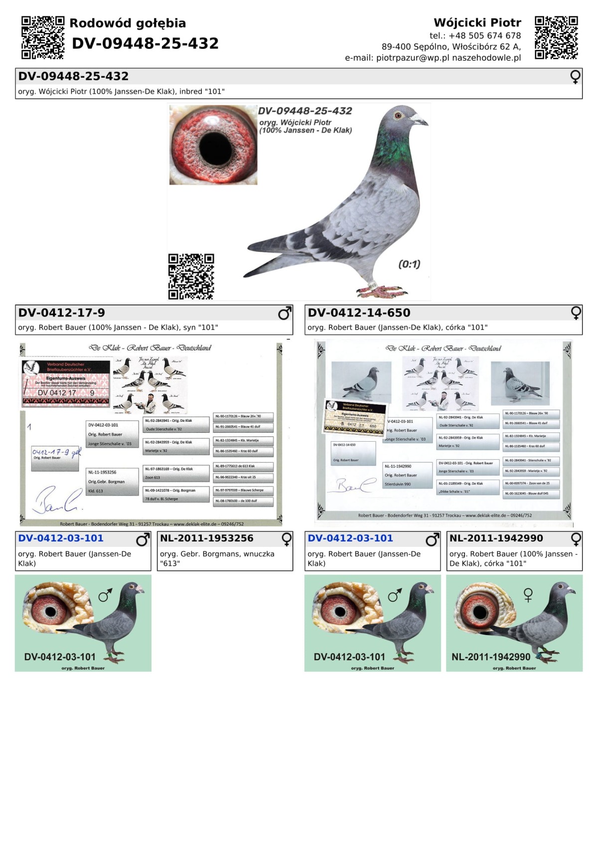 oryg. Wójcicki Piotr (100% Janssen-De Klak), inbred "101"