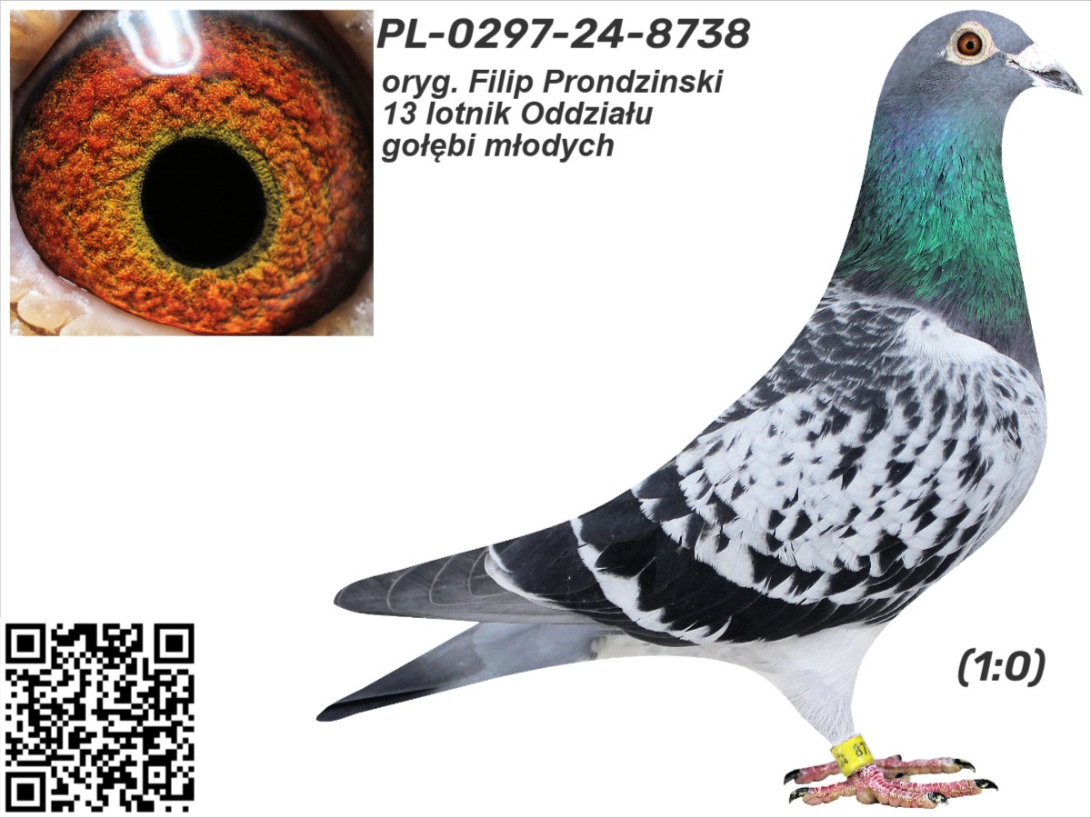 oryg. Filip Prondzinski, 13 lotnik Oddziału gołębi młodych, gołąb zdobył m.in.: 10k./774goł. (339km)