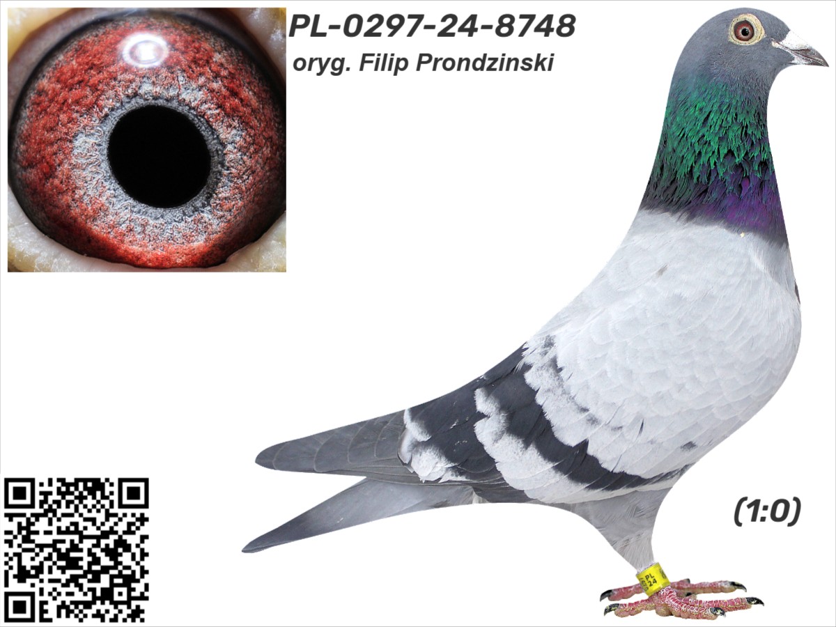 oryg. Filip Prondzinski, gołąb zdobył m.in.: 30k./2487goł. (138km), 62k./1925goł. (229km) itd.