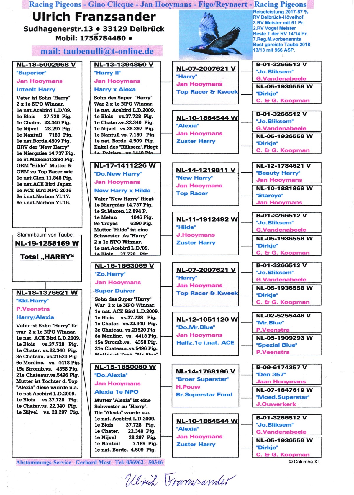 oryg. Ullrich Franzsander (100% Hooymans), inbred "Harry"