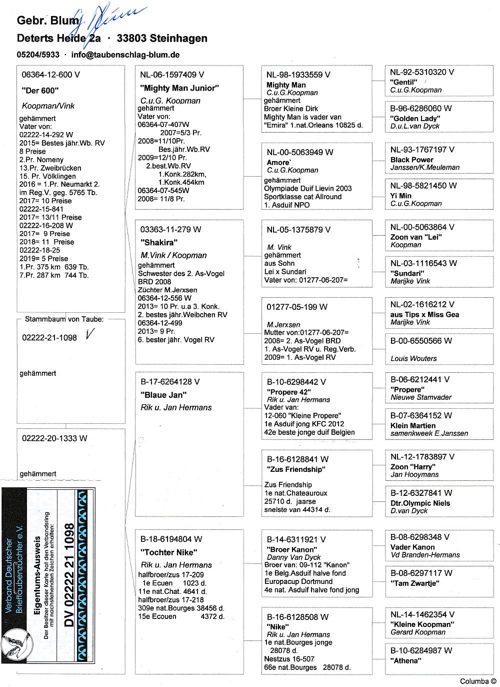 oryg. Gebr. Blum (Koopman/ Vink/ Hermans/ Van Dyck), linia "Mighty Man Junior", "Shakira", "Blaue Jan", "Nike"