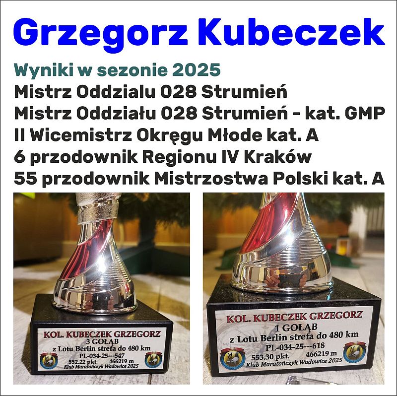 | Wyniki w sezonie 2025 Mistrz Oddzialu 028 Strumień Mistrz Oddziału GMP Strumień II Wicemistrz Okręgu Młode kat A 6 przodownik Regionu IV Kraków 55 przodownik Mistrzostwa Polski kat. A |